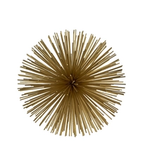 Deze ronde ornament komt uit de serie Prickle Brass van het merk Pols Potten. Het is een ronde bol met ijzeren stekels met een gouden messing in verschillende lengtes. Hij staat leuk in een open kast of op een dressoir om een lege muur op te vullen. Hij zal zeker gelijk in het oog springen. Deze is ideaal te combineren met de Prickle Brass van andere groottes. De bol heeft een diameter van 26 cm.